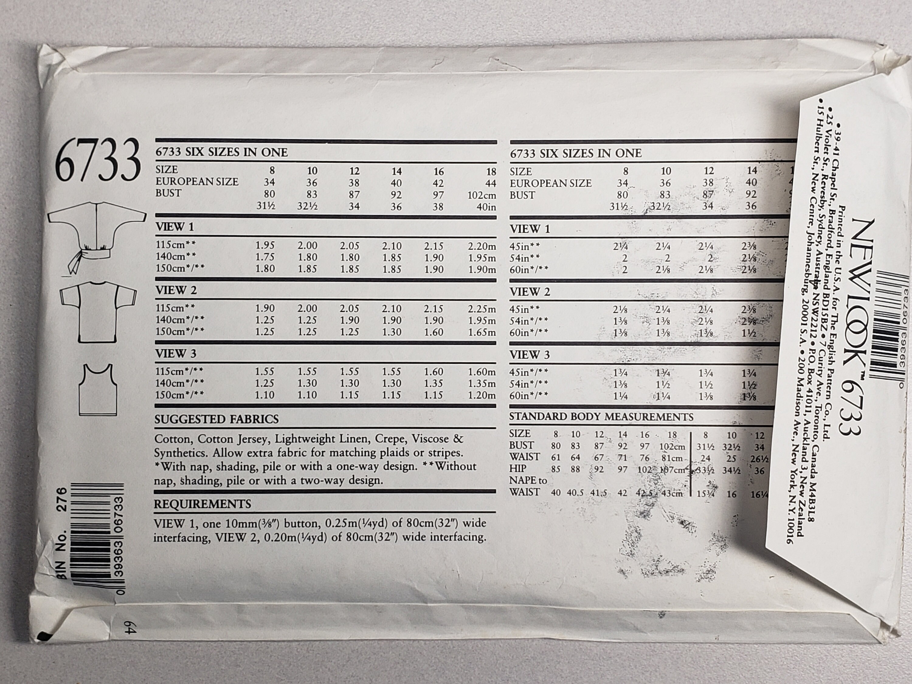 New Look 6733 Sewing Pattern Women S Size 8 18 Top Tank Etsy